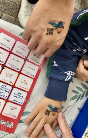 このボディシール、3年くらい前から始めているのですが、毎年来てくれるちびっこもいるくらい大好評で、とても喜んでいただいてます。パレードに参加した区内の小学生やちびっこ達がドッと来場してくれて、あれだけ沢山あったシールも、2日目お昼過ぎにはすべてのシールがなくなってしまいました。