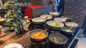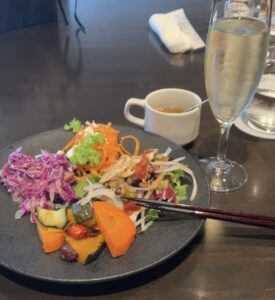 サラダバーは種類はちょっと少な目かなーと思いましたが、お味も良いし、ヘルシーだし、トマトやゴボウのドレッシングなど面白いものもありました。