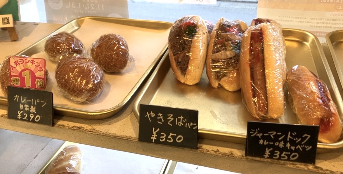 素朴で昔懐かしい自家製の総菜パンから、優しい甘さが嬉しいおやつ系パンまで種類豊富(60種類、10:30頃全種類揃うそうです)、お値段も手ごろなので、ご近所の方や桜丘にお勤めの方に大人気!