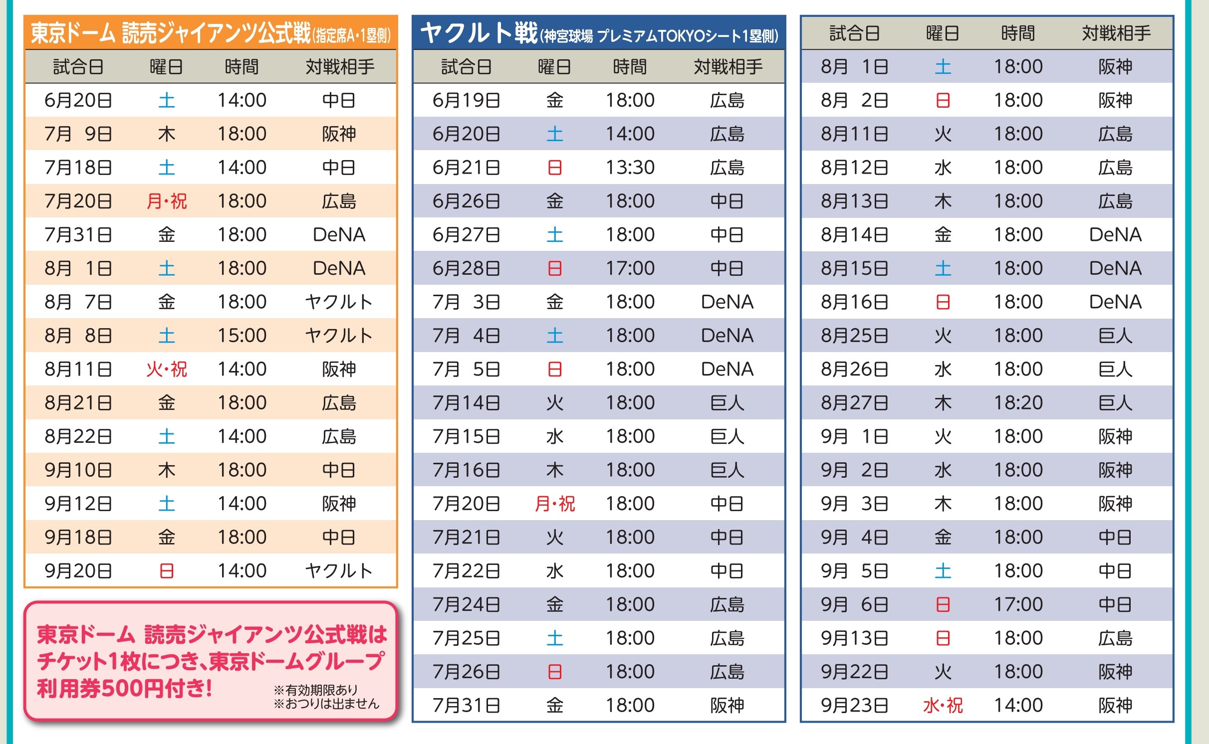 誤 ヤクルト戦 8/11(火) →正 ヤクルト戦 8/11(火・祝)